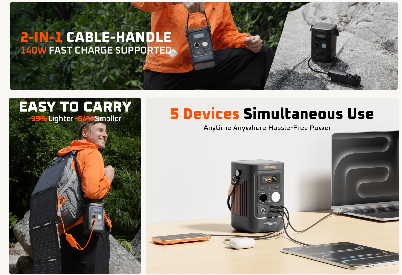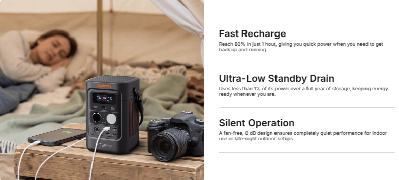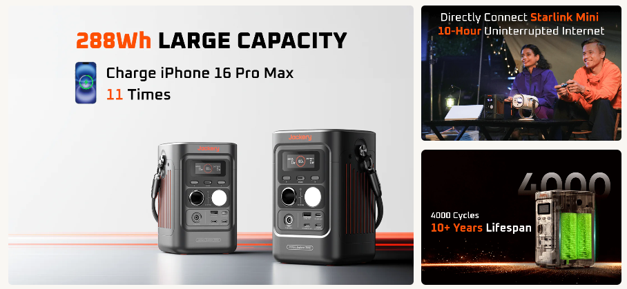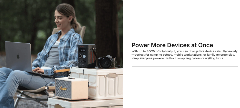 A lightweight 288Wh LiFePO₄ power station built for everyday carry. Weighing just 5.5 lbs, it delivers 300W DC output to power up to five devices at once, including a 140W USB-C fast-charging port for laptops and cameras. With 4,000+ battery cycles — lasting up to 10 years of daily use, it keeps essential gear powered anywhere.