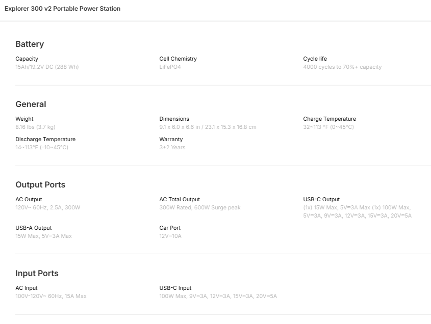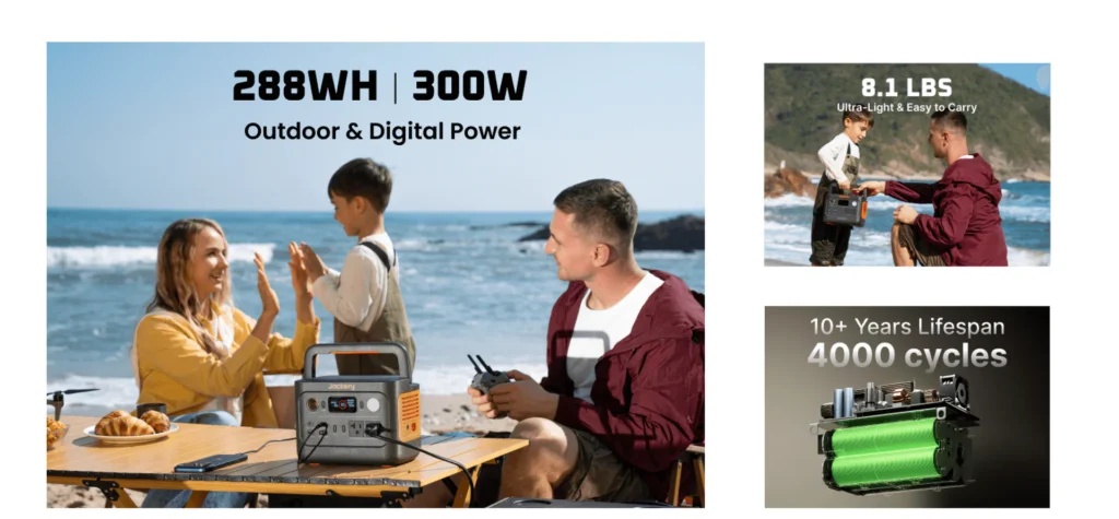 288Wh of capacity and 300W output keep you powered anywhere.