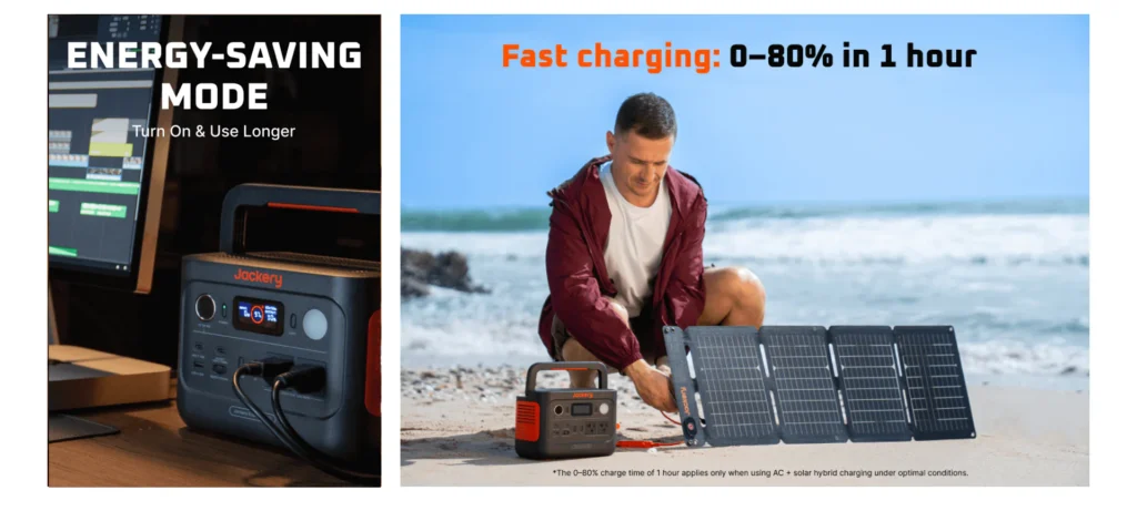 Up to 80% in 1 hour, with solar, car, or wall charging support.