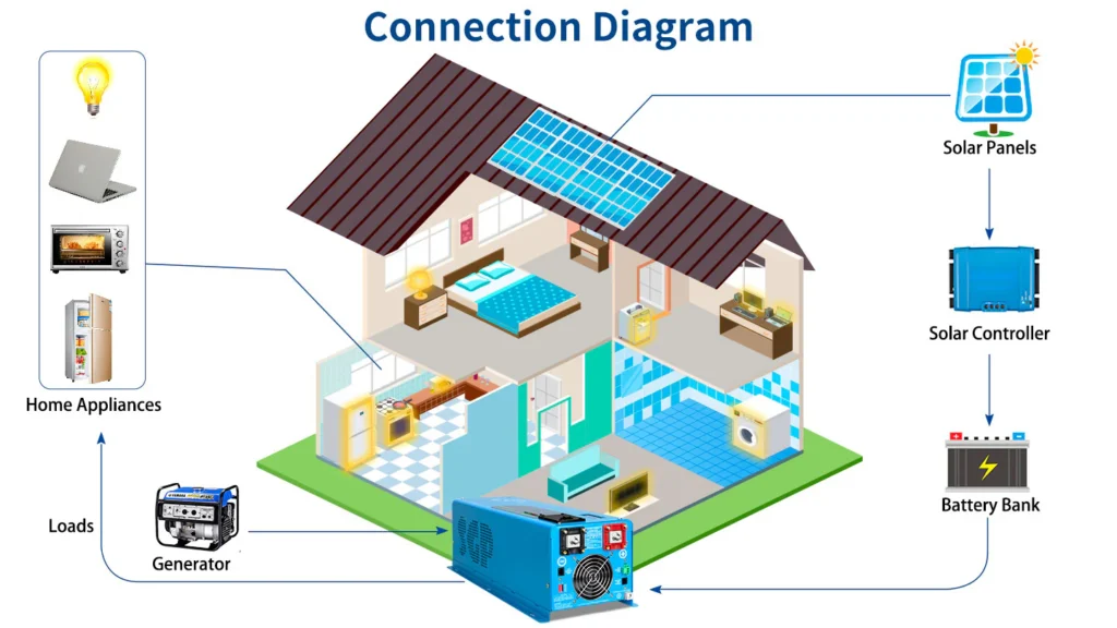 ★ It has a built-in 60 amp battery charger which help the grid or generator to recharge the battery.