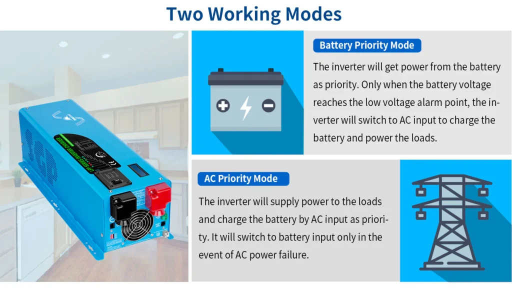 Three in one product: ★ This inverter transforms 48V DC power stored by batteries to AC electricity that can power the tools and appliances.