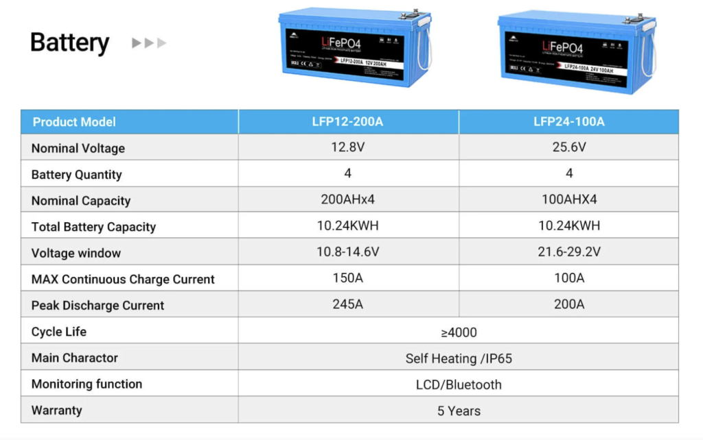 | Options | Inverter Only, Inverter + 4x 12V 200Ah Batteries |