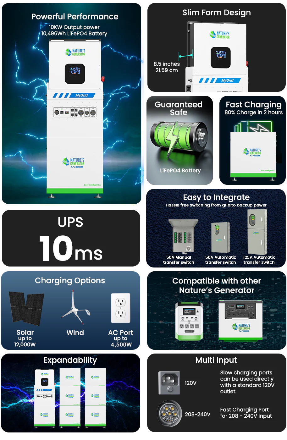 Engineered for whole-home capability, the MyGrid 10K delivers high-capacity power, flexible charging, and reliable performance for any energy demand.