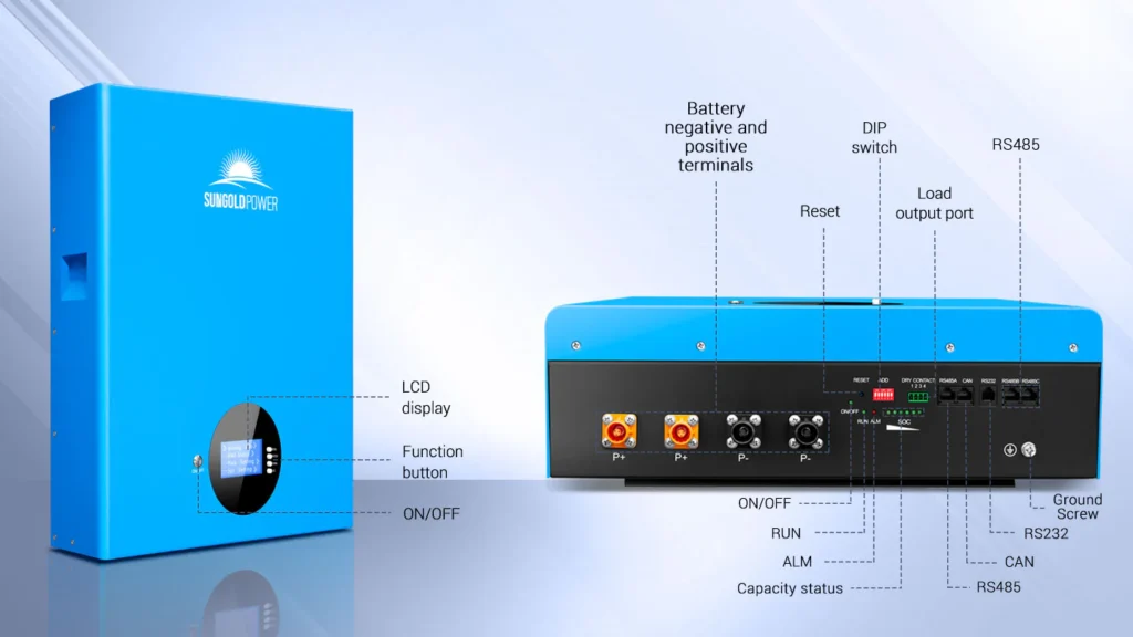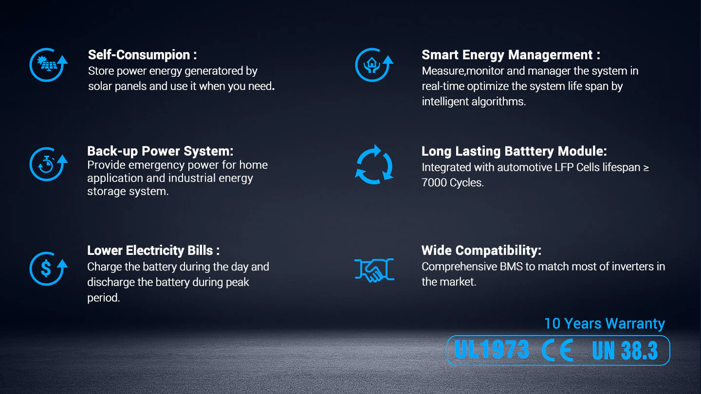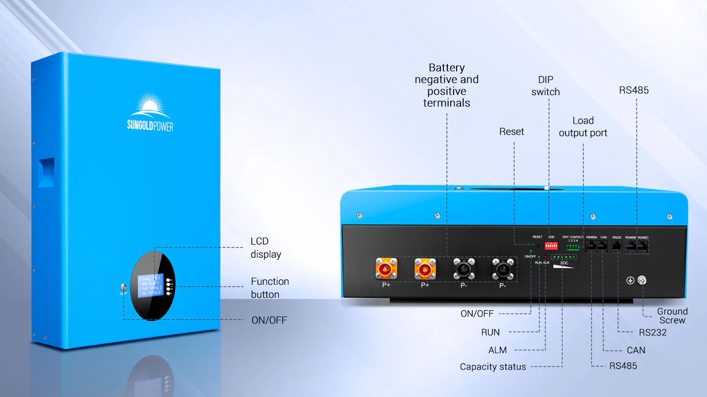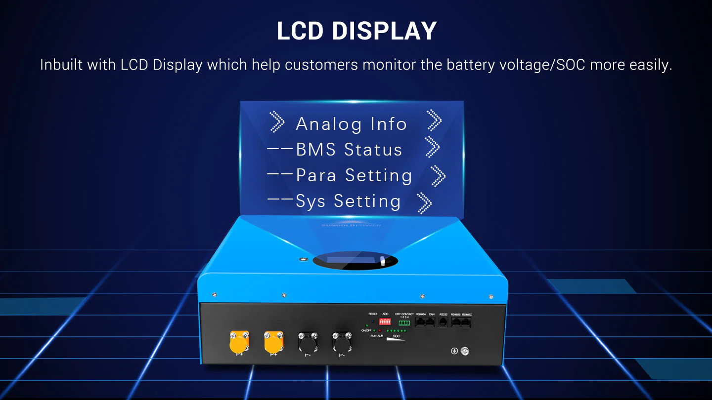 The SG48100M Lithium Battery is built for energy storage and provides well-designed and high-performance standard battery pack. The battery is compact, easy to install, free of maintenance and can be installed in parallel in the energy storage system to increase its capacity. lt is widely used in home applications, small commercial and industrial energy storage, and others.