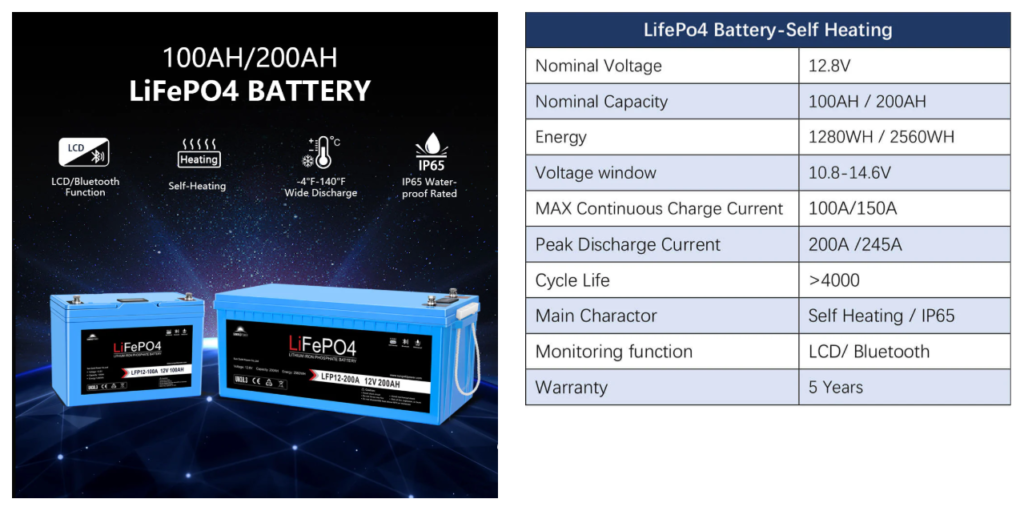 | Battery Option | (2) 100Ah LFP Batteries, (2) 200Ah LFP Batteries |