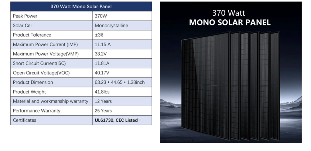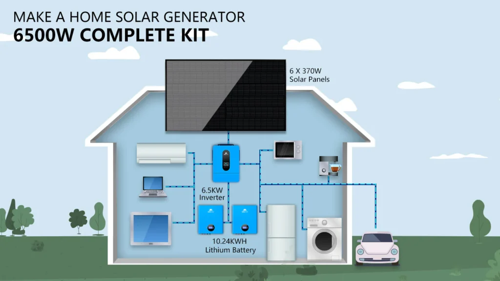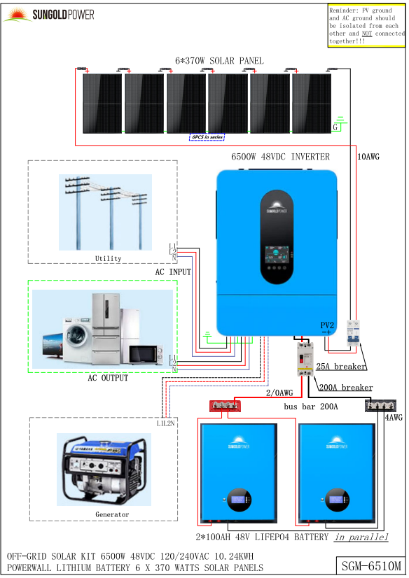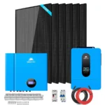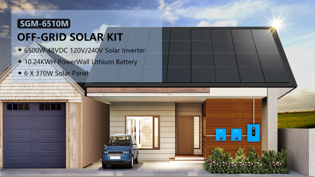 This Solar Panel Kit is a great starter package for a Complete Off-grid cabin or shop, it includes the (6) 370W solar panels, (2) 5.12kWh Powerwall battery, 6.5kW solar inverter, a set of solar cable and bracket. The Solar Array will produce around 8.88kW per day based on 4 hours of sun. This size of system generally works great for cabins, shops, RVs and etc that use around 266 kWh per month. You can add more batteries and solar panels according to your requirements. Let’s Enjoy off grid living and the adventure with Solar Energy Kit!