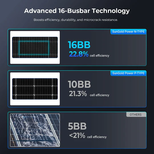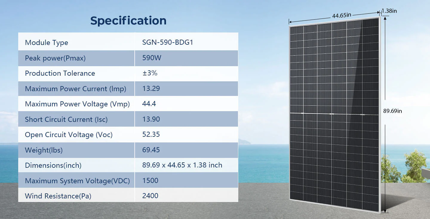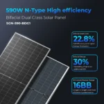The SunGoldPower 590W bifacial panel boosts efficiency, delivering more output up to 796W without changing the panel size.