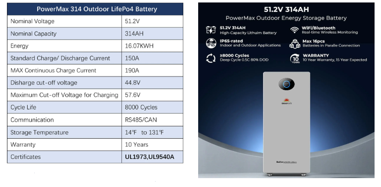 | Battery Option | 25.6 kWh, 25.6 kWh Self-Heating, 20.48 kWh, 32.14 kWh Outdoor |