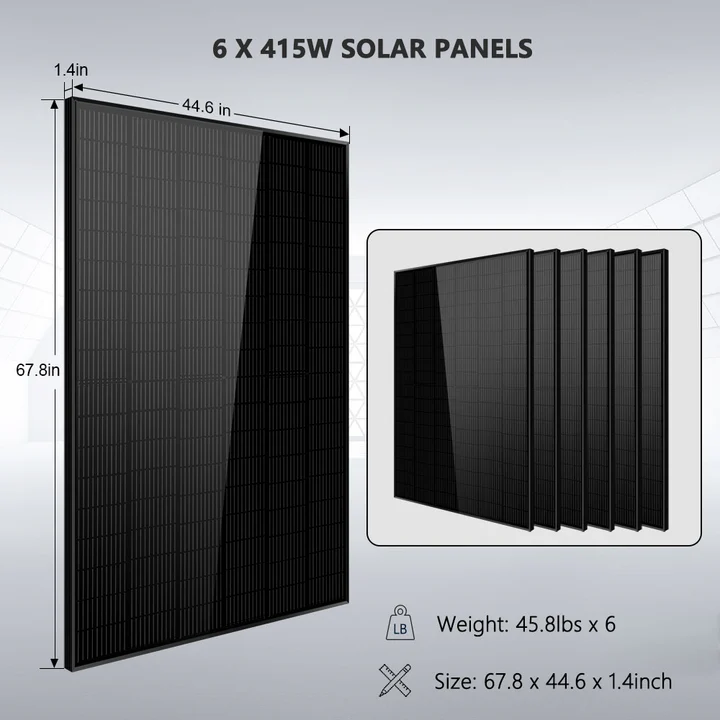 This solar kit comes with nearly everything needed to set up an off-grid solar system including a 5kW inverter, (6) 415W solar panels, (2) 5.12 kWh server rack batteries, a set of solar cables, and mounting brackets. The Solar Array will produce around 10 kWh per day based on 4 hours of sun. You can add more batteries and solar panel according to your requirements. The Wi-Fi monitor shows the performance and energy data of your solar system through an app. Enjoy off-grid living and the adventure with this Solar Energy Kit!