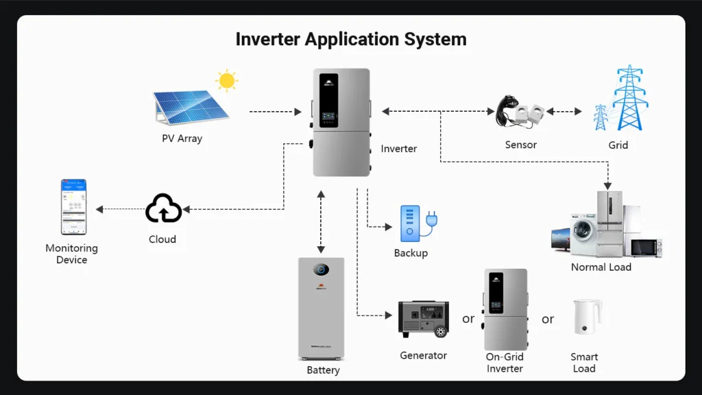Supporting up to 18 kW PV input and scalable to 72 kW with nine (6) units in parallel, this inverter is built for homes, farms, and small businesses with high energy demands. It delivers both split-phase 120/240 V and three-phase 120/208 V, adapting easily to diverse electrical environments.